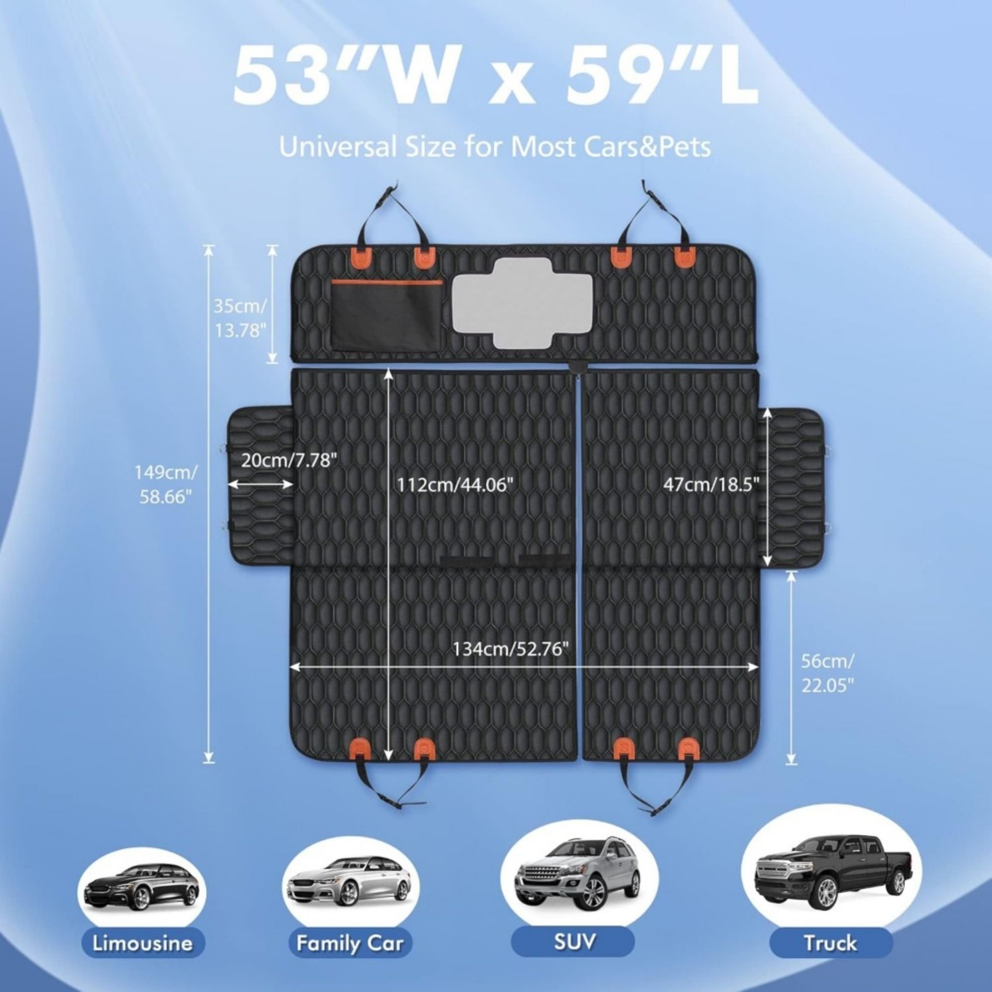 Anti-Slip and Stable: The durable anti-slip bottom ensures the cover stays in place, creating a stable hammock-like surface for your dog. This prevents the cover from bunching up or shifting during the ride, keeping your dog safe and comfortable. It's like a secure haven for your pet in the car.​