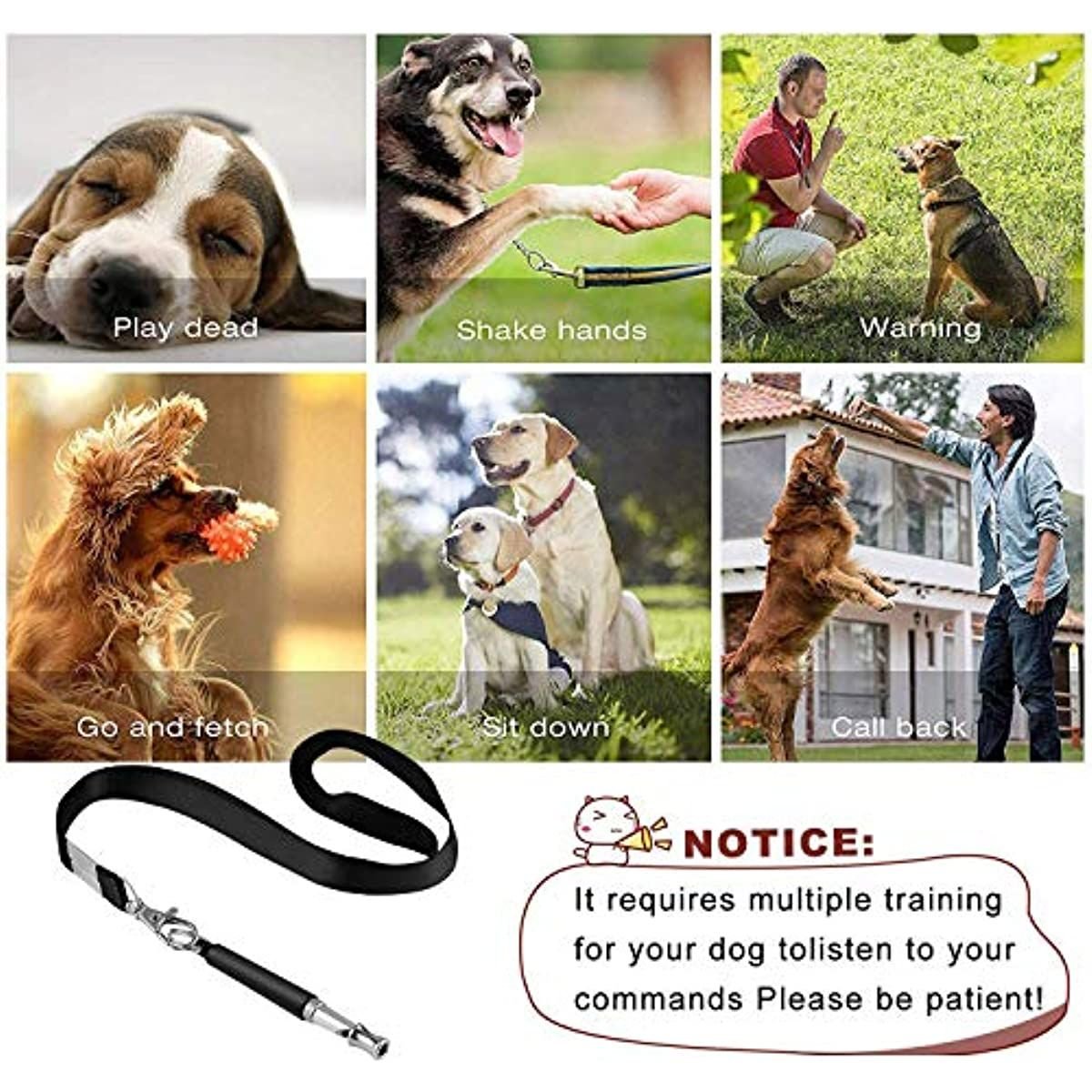 EFFECTIVE DOG TRAINING: Your pet can hear the dog whistle up to 25 meters away even if they can't see you! Train your dog with different commands and get them to follow your instructions. (Sit; Paw; Lay Down; Up; Heal).