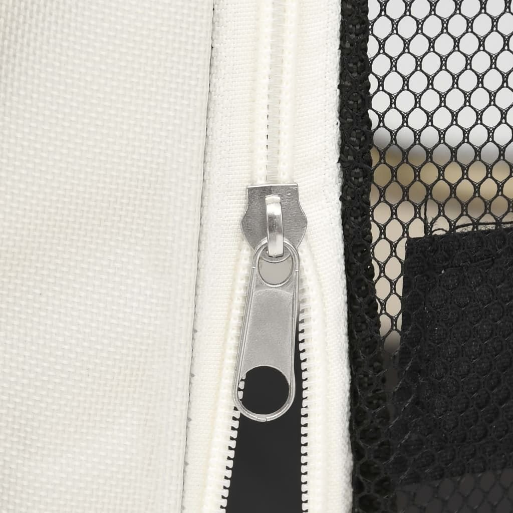 This playpen, with the dimensions of 35.4"x35.4"x22.8", is perfect for using at home or travelling. It includes a carrying bag for convenient storage. It is lightweight and yet very sturdy, thanks to the strong steel frame. The mesh roof and door can be opened or closed quickly with the zipper. The side nets ensure good air circulation and great visibility. Additionally, the side pockets are suitable to keep small items, like toys. This run cage can be easily stored with its foldable design when not in use.