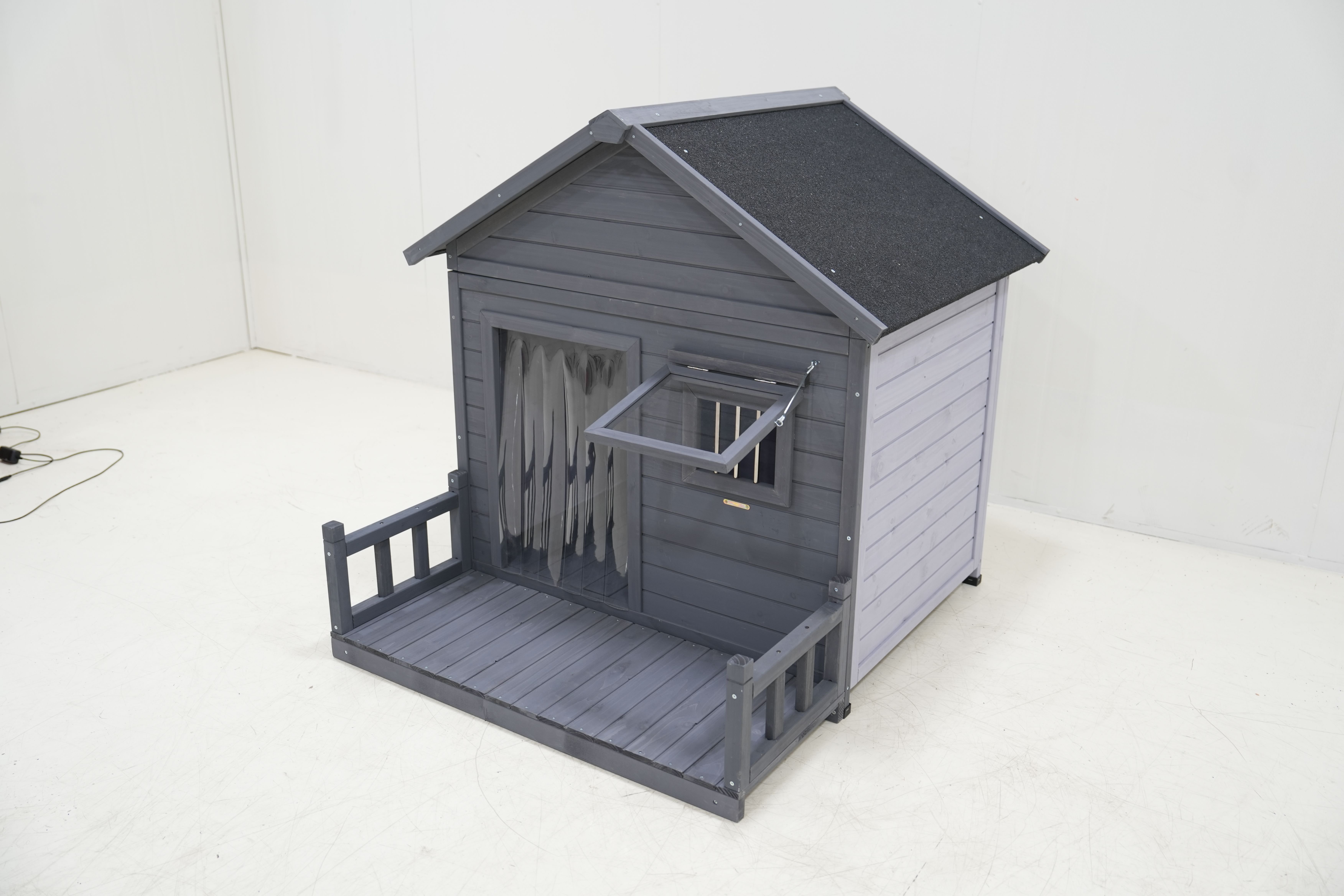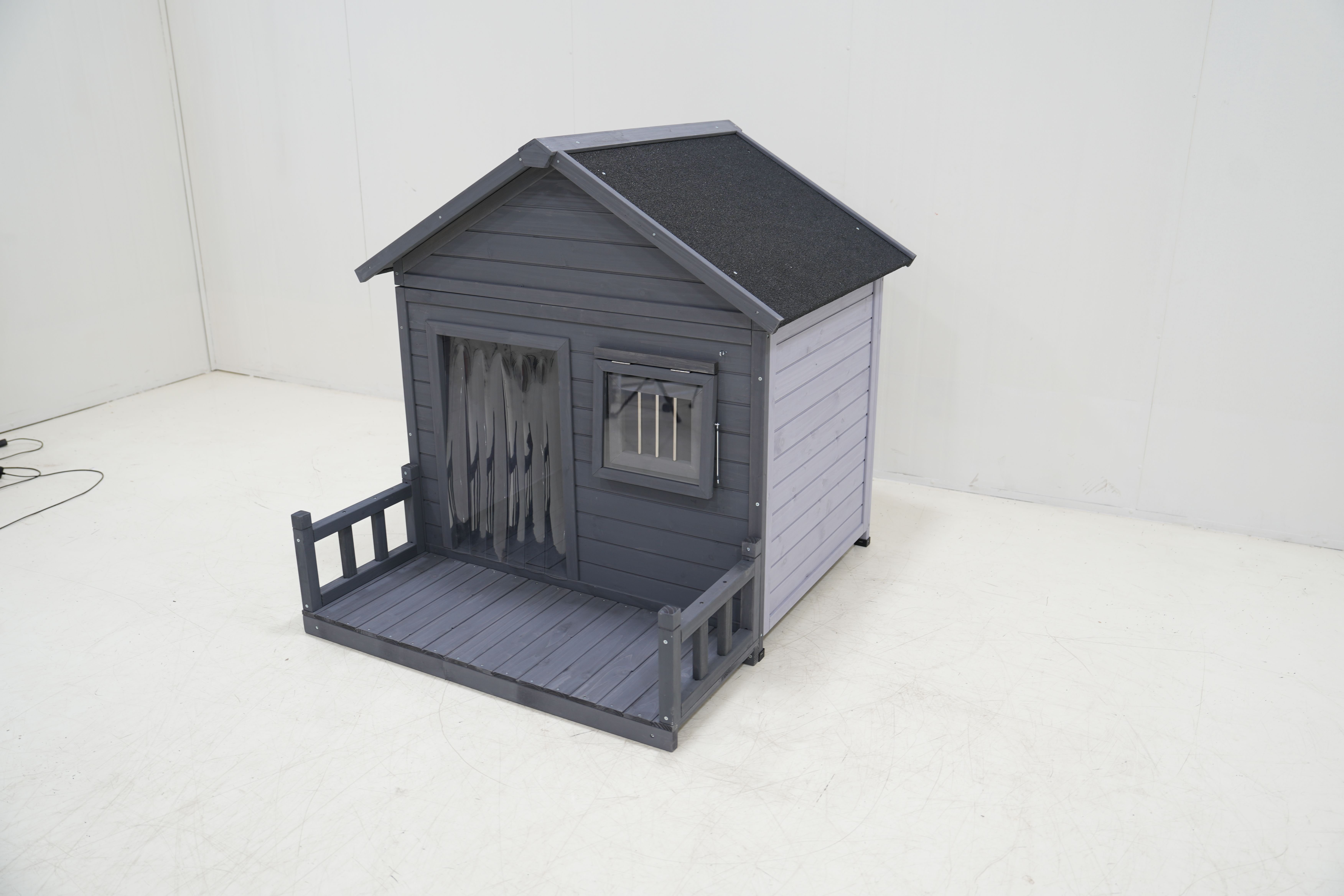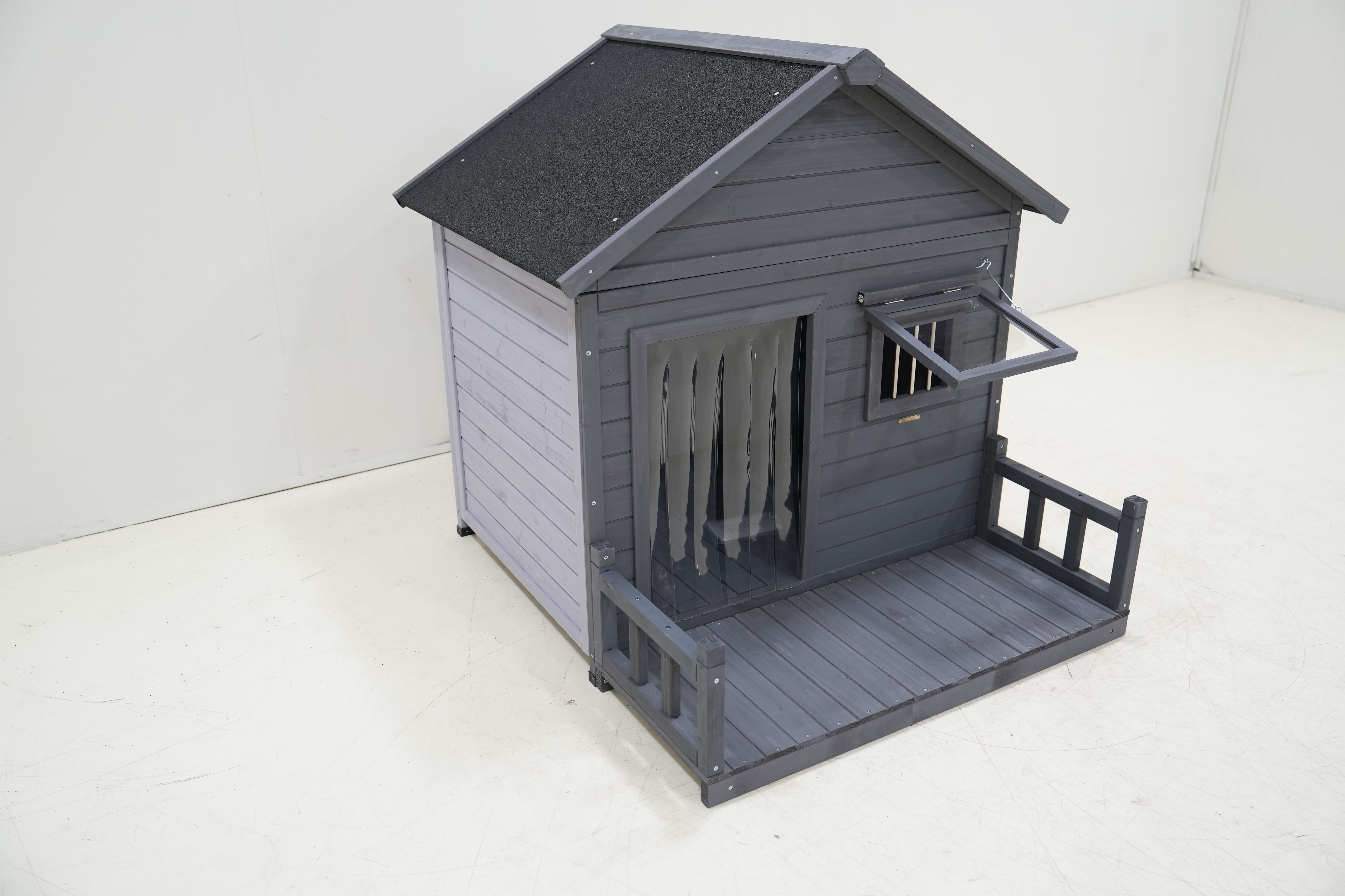 1.The spacious terrace of this large dog house offers plenty of space for your furry friend to observe the world or relax. Even on rainy days, the linoleum waterproof roof is thermally insulated, allowing your dog to play freely and stay dry