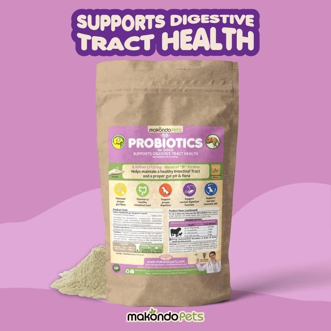 1.9 strain probiotics for dogs: the powers of 9 species come together to deliver a probiotics powder that soothes a dog's upset stomach to treat diarrhea, loose stool, bloating, excessive gas, bad breath, constipation & other digestive issues. formulated by veterinarians: our high potency 5b probiotics powder has been formulated by a team of experienced veterinarians, which means you know you're getting the very best dog health supplies for your precious pooch. proudly 100% made in