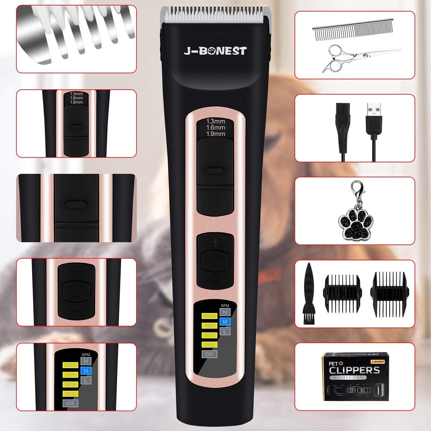 4. [Power display and speed] The cordless dog cutter has a clear power display and 3 adjustable speeds. The power display includes: 25%-100%; you can easily know the remaining power.