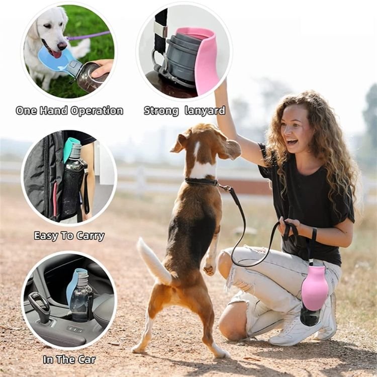 1.Foldable water bottle design, you dont need to carry an extra bowl for your pet to drink water.
